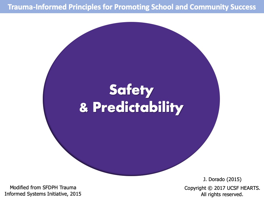 Establishing physical, relational, and emotional safety, as well as predictability in the environment, can assist us to focus resources on healthy development, wellness, learning, and teaching.